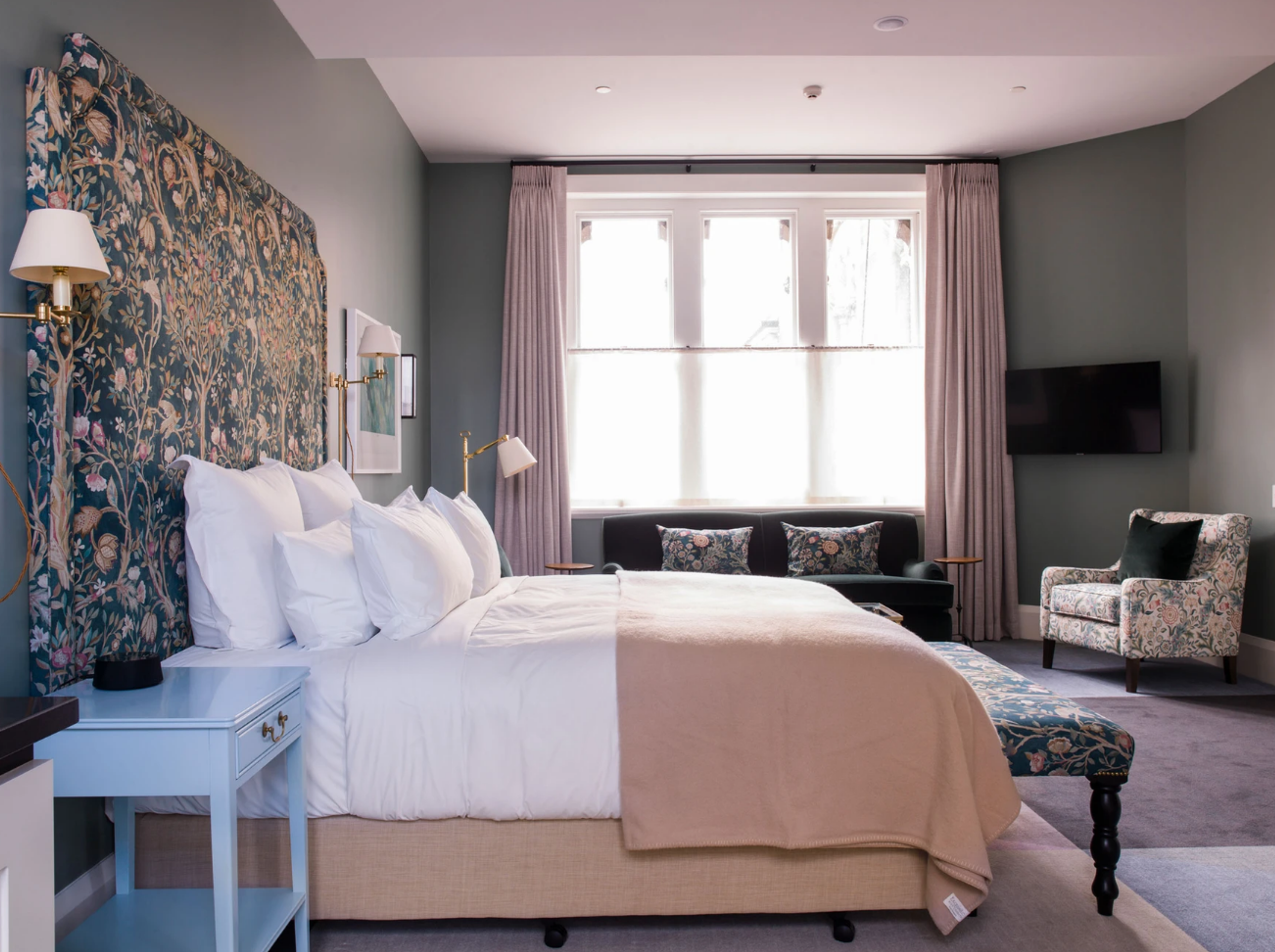Interior styling is reminiscent of a large stately house but with a modern twist. Guests can enjoy a lavish drawing room and library, and distinctive furnishings made by local craftspeople. Modern local artworks in each room and all public areas are for sale.